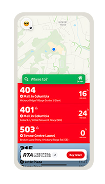 On a computer? Our routes show up on Google Maps, or you can visit live.goswift.ly/rtamaryland to view virtual maps of our routes. Just select the route, direction, and bus stop you want to see arrival times for.