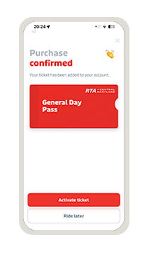 When you’re ready to ride, activate your ticket. Look for the contactless scanner which is installed at the front of the bus. Scan your phone against the reader until the light turns green. A single beep indicates successful payment.